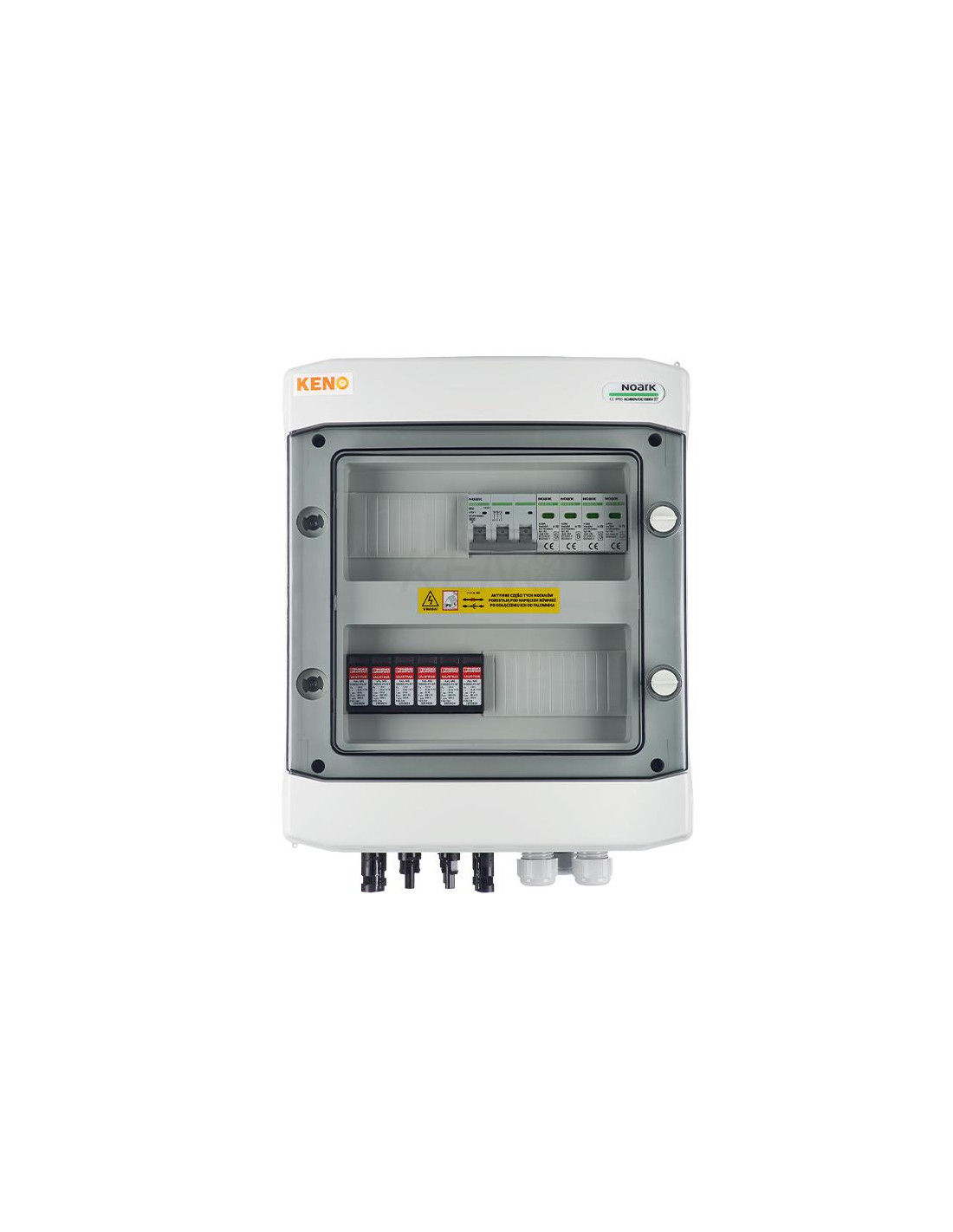 Lenkijos gamintojo KENO jungimo skirstomieji įrenginiai skirti fotovoltiniams keitikliams maitinti, apsaugai nuo trumpųjų jungimų ir perkrovų, taip pat apsaugai nuo netiesioginių iškrovų kintamosios ir nuolatinės srovės pusėje. Skirstykla turi būti naudojama įžemintuose ir izoliuotuose fotovoltiniuose įrenginiuose. Dėl aukšto IP apsaugos laipsnio galima montuoti lauke. Skirstomasis įrenginys skirtas montuoti ant paviršiaus. Priklausomai nuo įrangos, skirstomasis įrenginys gali atlikti įvairias funkcijas.
