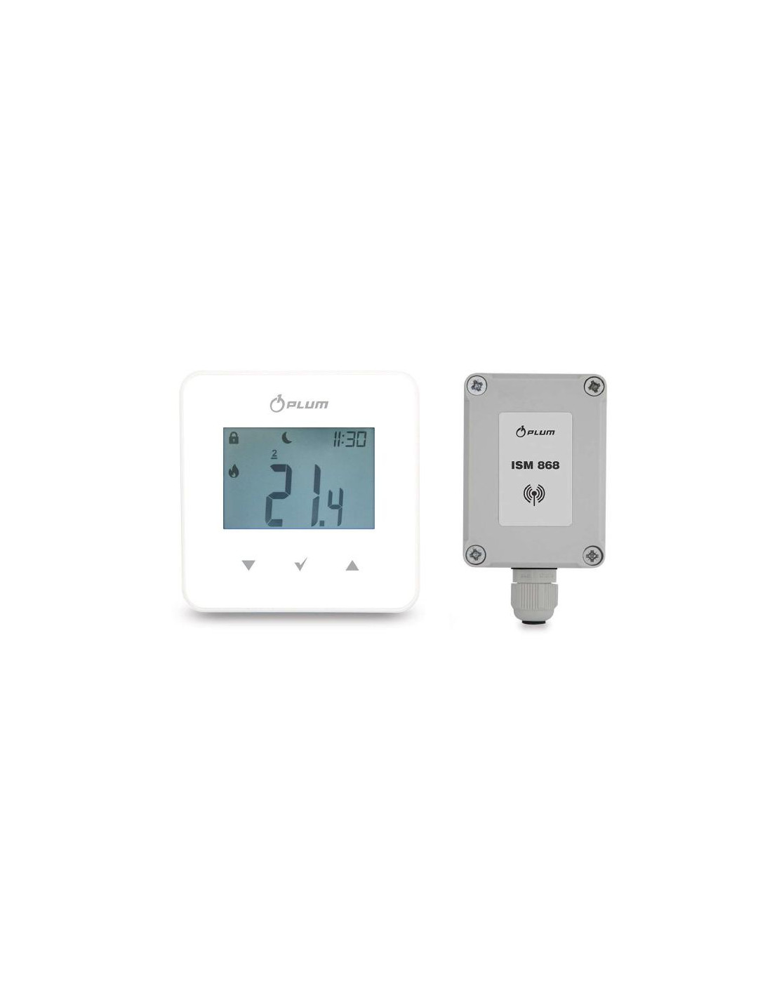 eSTER_x40 akumuliatoriaus kambario termostatas skirtas belaidžiam bendradarbiavimui su išoriniu ISM_xSMART radijo perdavimo moduliu. Termostatas yra sumontuotas pasirinktoje patalpoje ir jo užduotis yra palaikyti nustatytą temperatūrą patalpoje siunčiant radijo signalą į ISM_xSMART modulį, prijungtą prie pagrindinio reguliatoriaus. Naudojamas dvipusis ISM radijo ryšys leidžia iš pagrindinio reguliatoriaus į termostatą perduoti informaciją apie kuro lygį bake, reguliatoriaus aliarmo būsenas ir išorinės temperatūros reikšmes. Termostatas apšviestame LCD ekrane rodo informaciją apie kambario temperatūros reikšmę, pasirinktą darbo režimą, esamą laiką ir datą kartu su laikrodžio sinchronizavimu su pagrindiniu reguliatoriumi.